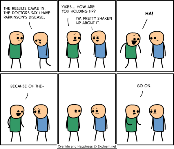 El humor negro -como todo humor políticamente incorrecto- tiene algo que otros no, y es eso que genera que te hacer reírte mucho más por dentro que por fuera porque -de algún modo- sabés que si lo disfrutaras a pleno serías algo así como un sádico.